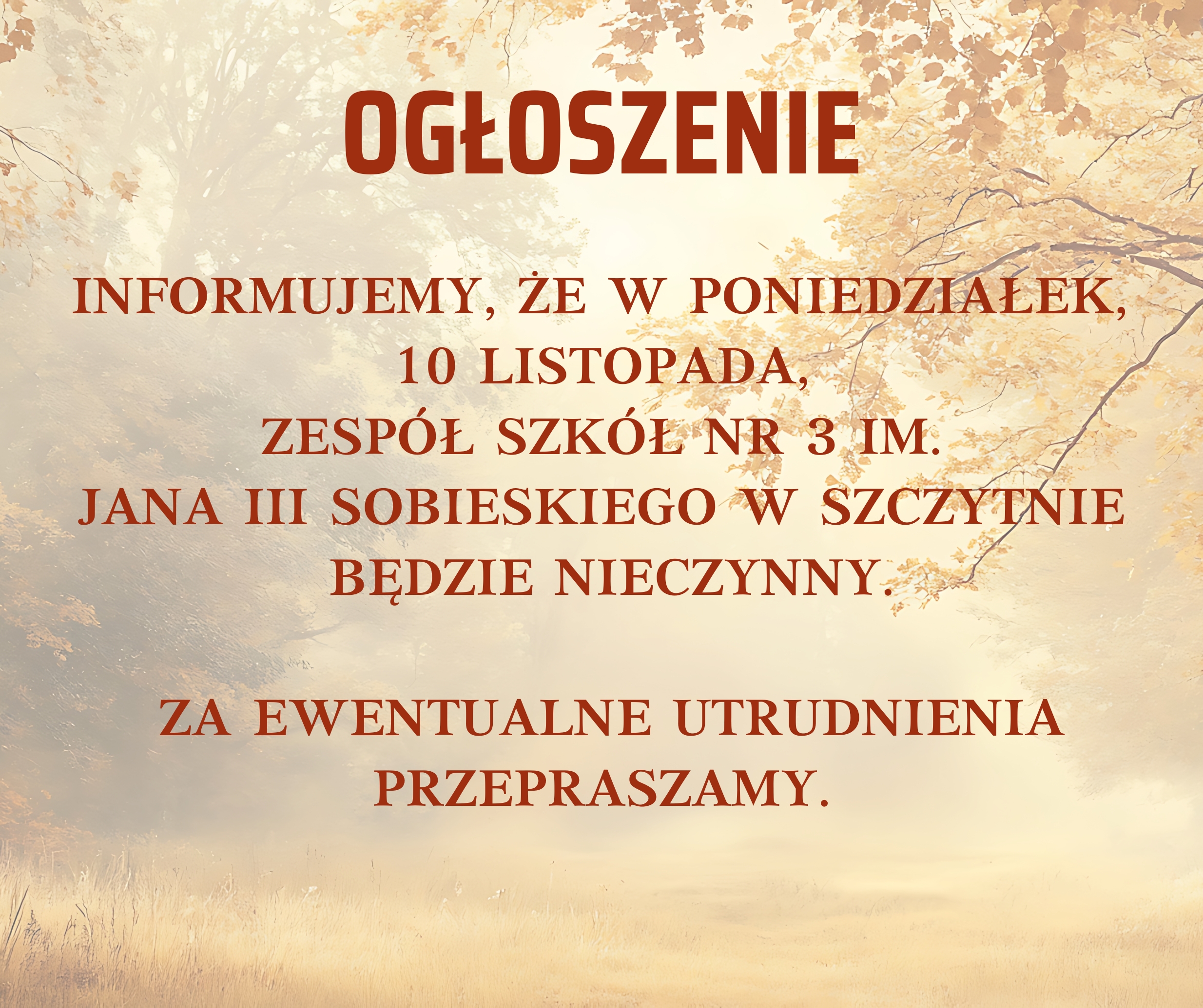 Organizator: Zespół Szkół nr 3 im. Jana III Sobieskiego, ul. Jerzego Lanca 10, 12-100 Szczytno