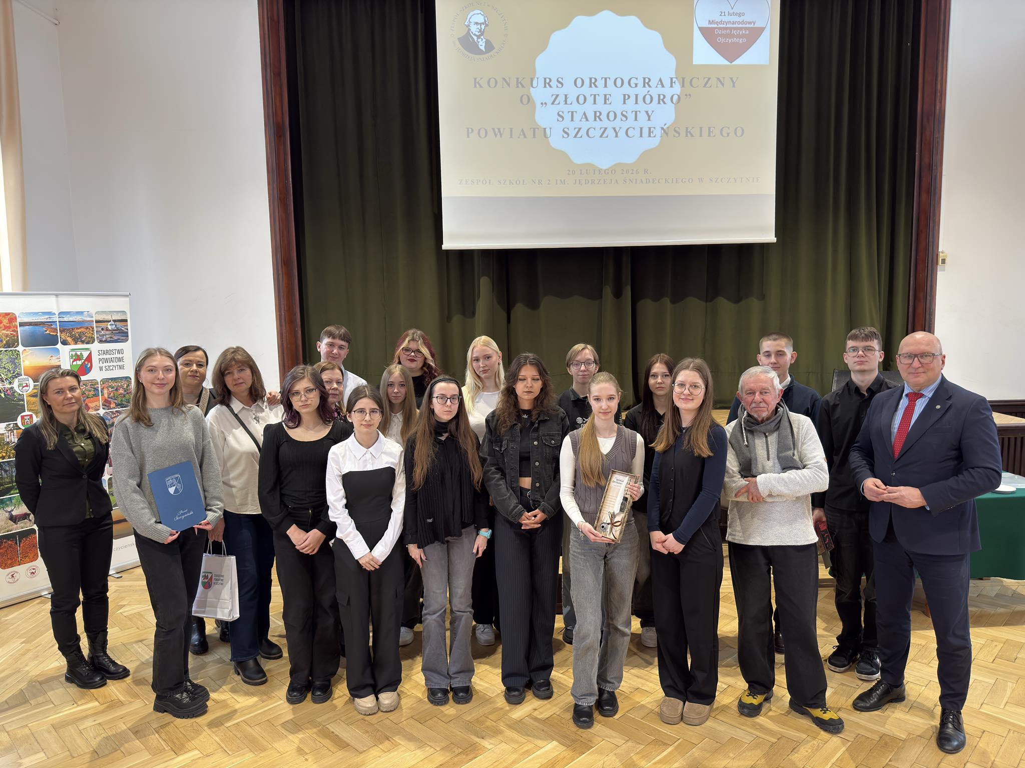 Już po raz dziewiąty uczniowie szkół ponadpodstawowych z naszego powiatu rywalizowali o Złote Pióro Starosty Szczycieńskiego w konkursie ortograficznym, który odbył się 20 lutego w ZSnr2 w Szczytnie. Tekst tegorocznego dyktanda napisał Pan Jerzy Niemczuk, znany pisarz, scenarzysta filmowy mieszkający od lat w naszym regionie. Niełatwy bój z zasadami polskiej ortografii i interpunkcji stoczyło 15 uczestników reprezentujących szczycieńskie zespoły szkół ponadpodstawowych.
