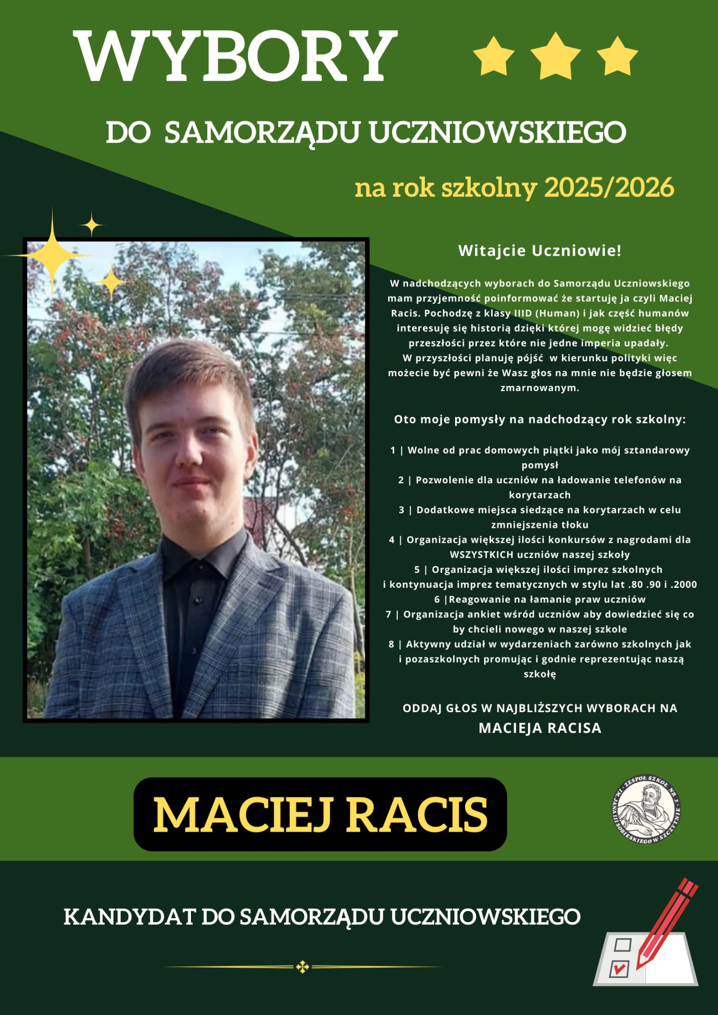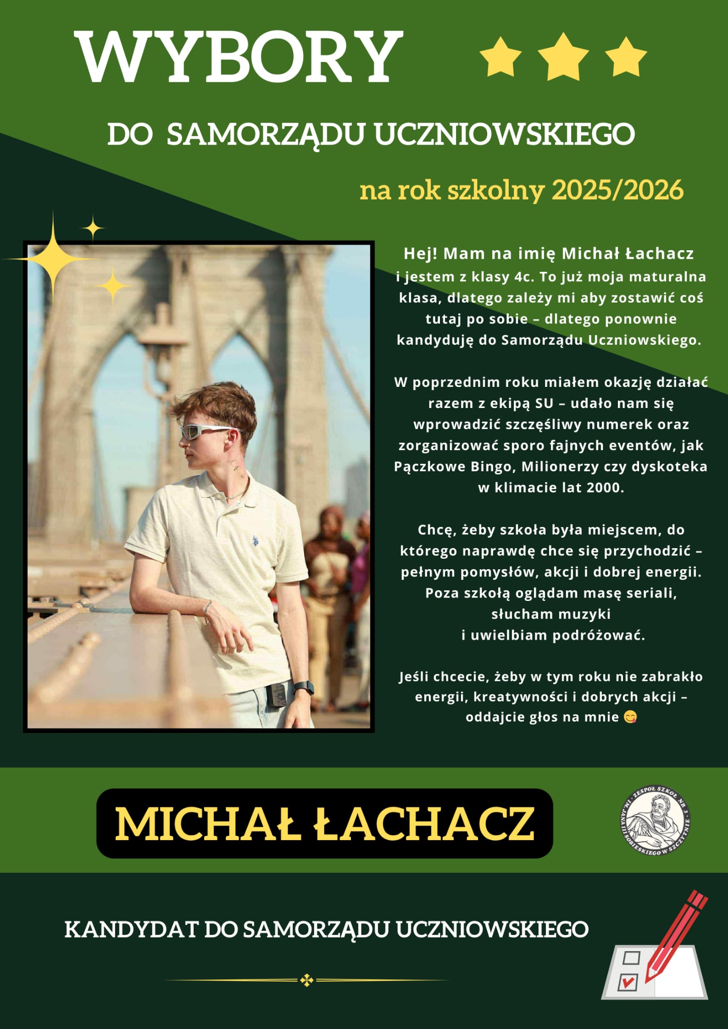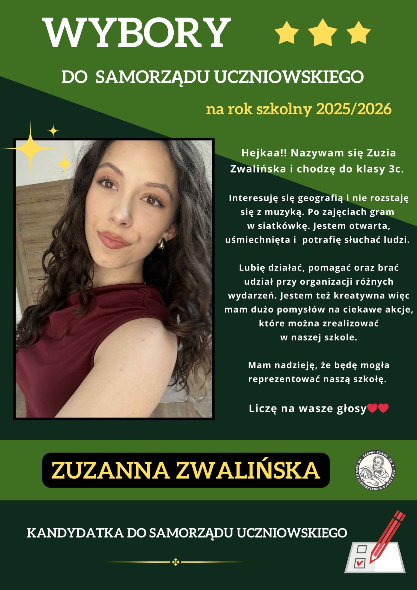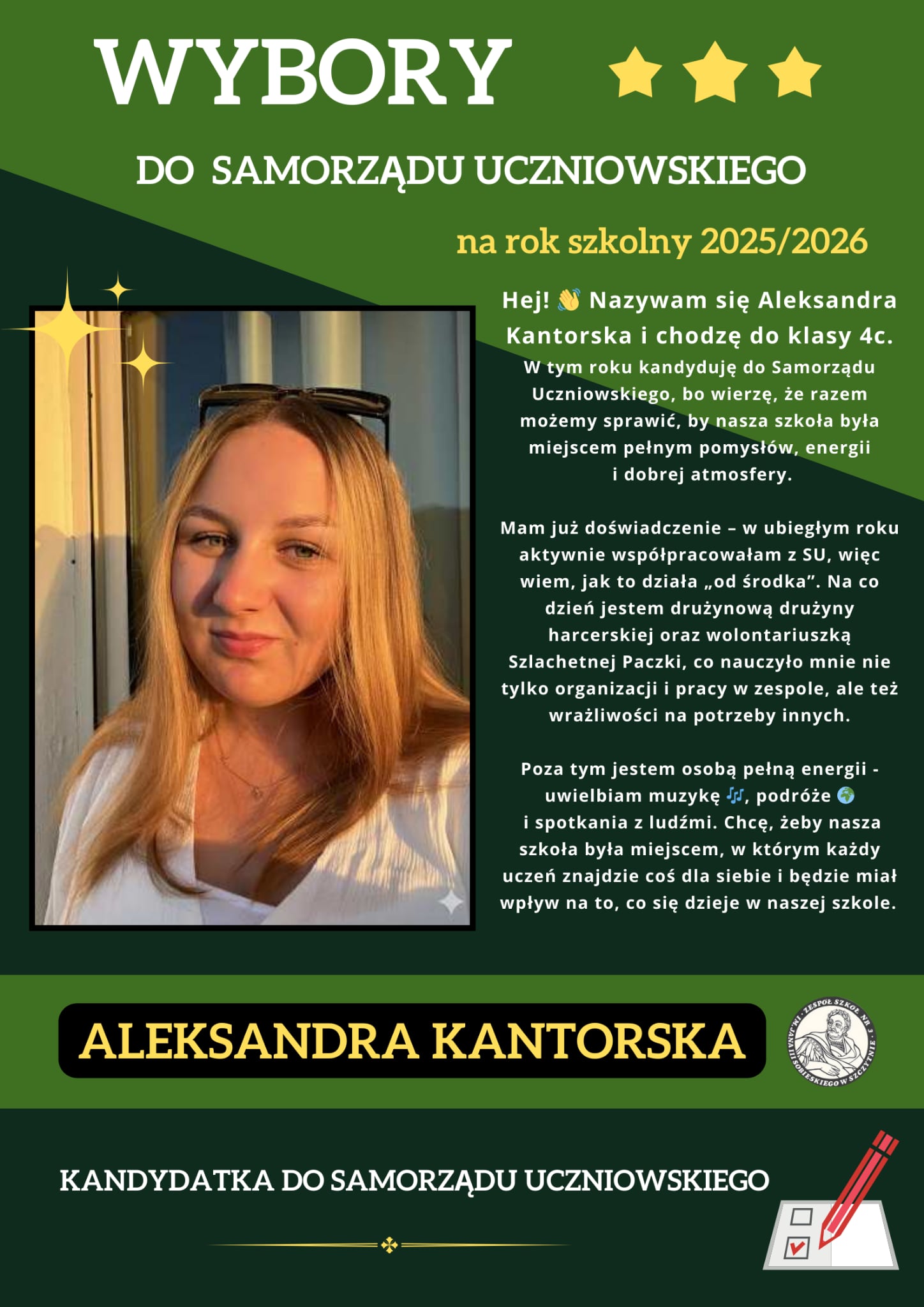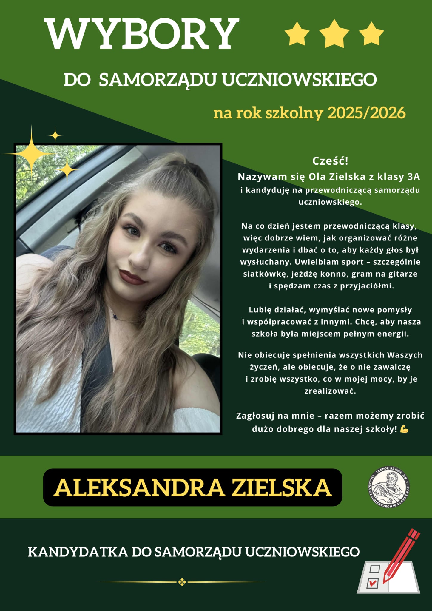 Zachęcamy do zgłoszenia swojej kandydatury w wyborach Samorządu Uczniowskiego na rok szkolny 2025/2026.