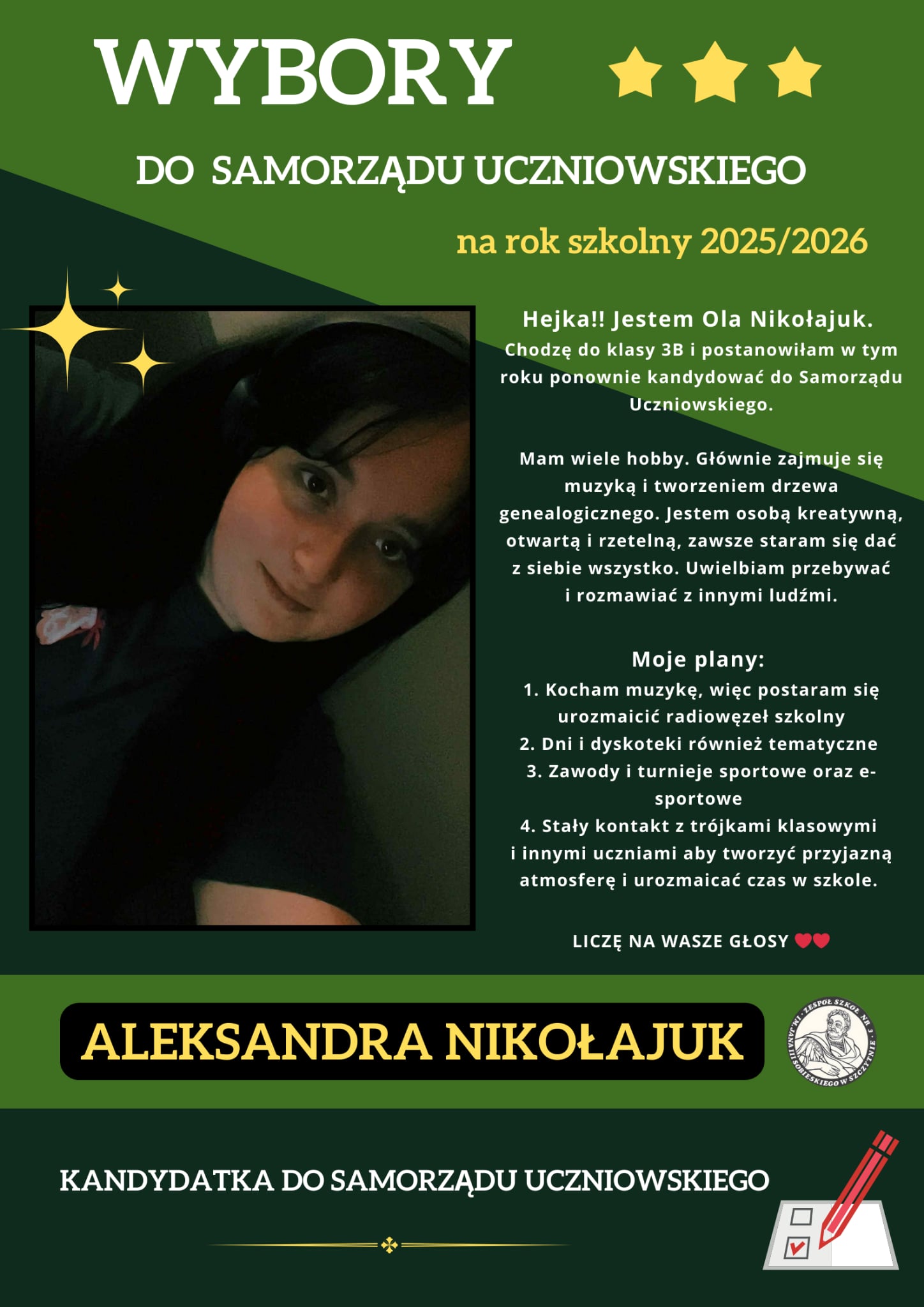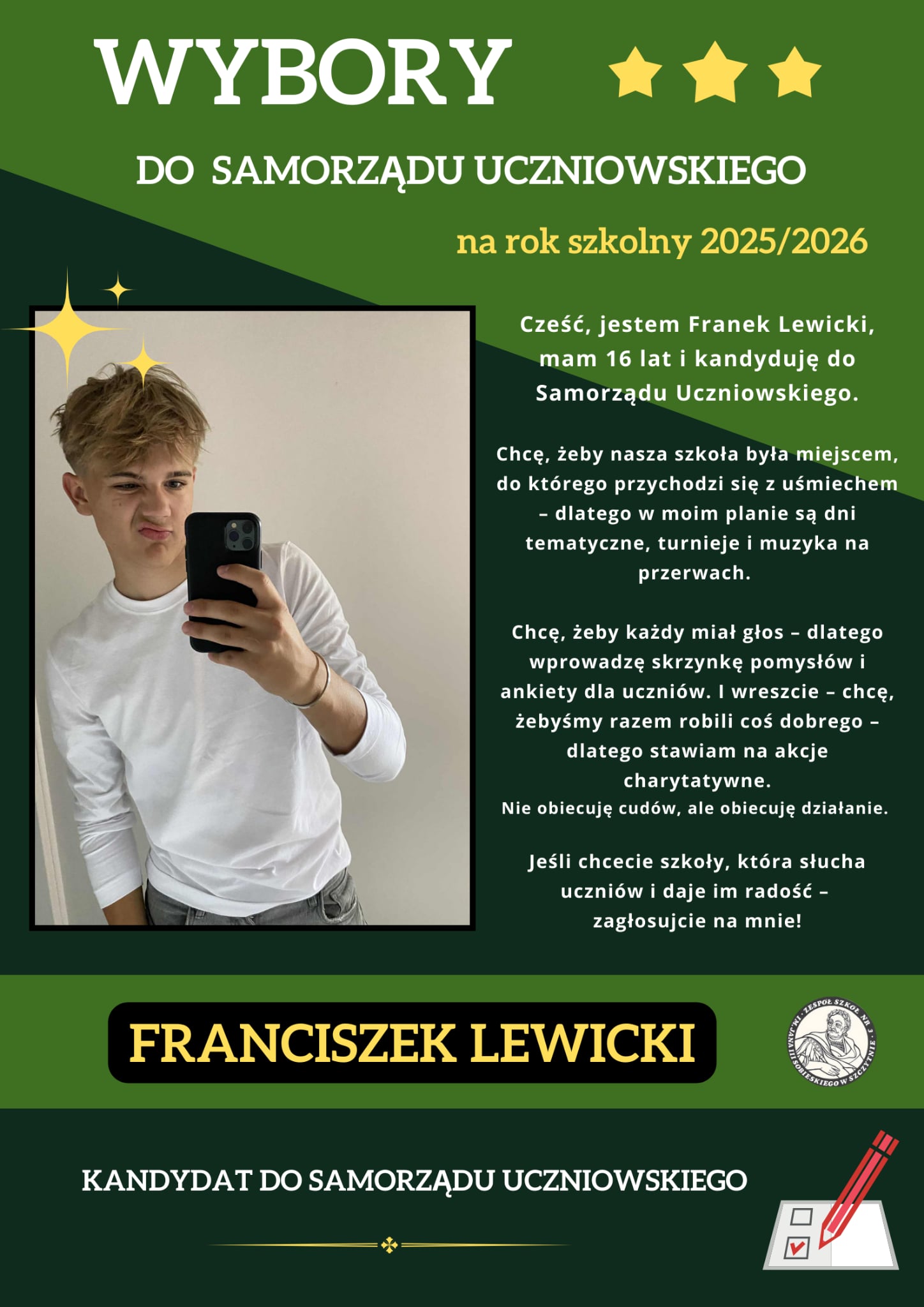 Zachęcamy wszystkich uczniów do aktywnego udziału – to od Was zależy, kto będzie reprezentował naszą społeczność szkolną!